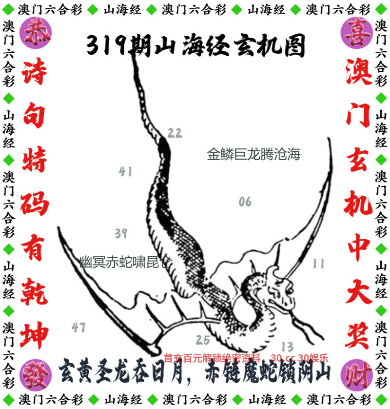 322期:【山海经玄机】开羊47 解释:九霄龙驹穿雷域,赤纹瑞羊伴金霞解狗羊兔 解料:赤焰战马踏霜地,白羽仙羊化青岚解虎猪马 综合:狗虎猪马羊兔 主特:20.44.04.16.07.31.12.24.11.47.03.15 |